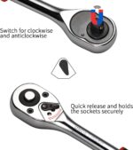 Quick-Release Ratchet Wrench: Features a smooth, durable quick-release ratchet head for easy socket changes and a fine-tooth mechanism (or high-tooth count) for minimal swing arc, perfect for working in confined engine bays or tight spaces.