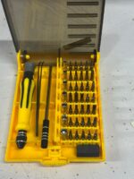 Tackle intricate repairs with our comprehensive precision screwdriver and bit set. This versatile kit includes a comfortable ergonomic handle, an array of interchangeable screwdriver bits, tweezers, and prying tools – all neatly organized in a durable case. Perfect for repairing smartphones, laptops, eyeglasses, watches, gaming consoles, and small electronics. A must-have for DIY enthusiasts and professionals seeking a reliable multi-bit tool solution.”