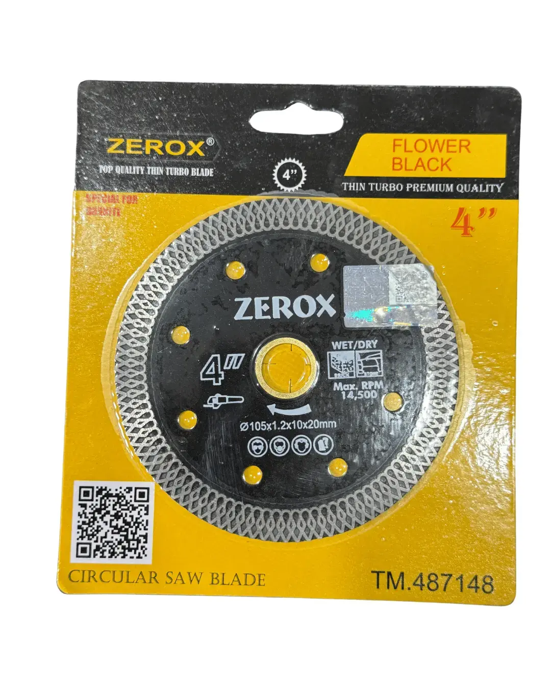 Achieve precise and smooth cutting with the ZEROX 4 inch Thin Turbo Diamond Blade – Flower Black edition. Designed for high performance, this premium cutting disc is perfect for cutting tiles, marble, granite, and other hard materials.